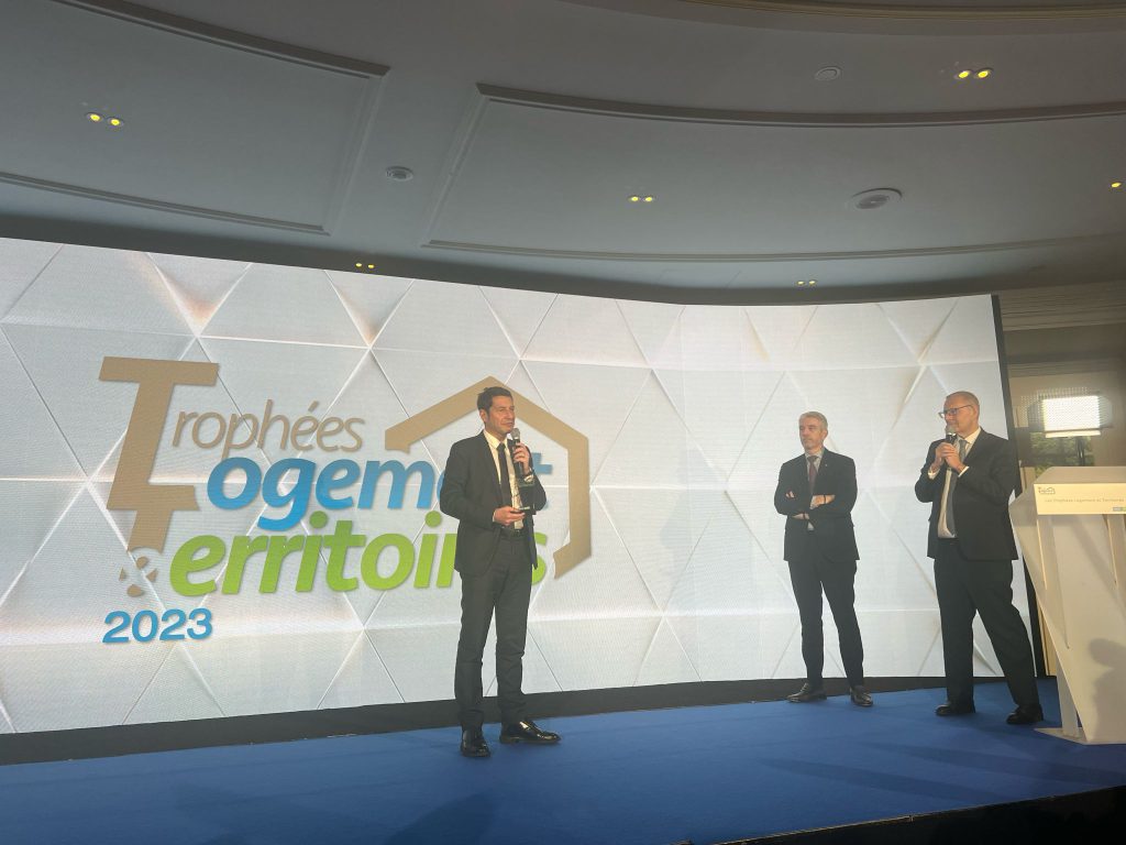 Après Christophe Robert, délégué général de la Fondation Abbé Pierre, David Lisnard reçoit le prix du jury des Trophées Logement & Territoires pour son engagement en faveur du secteur