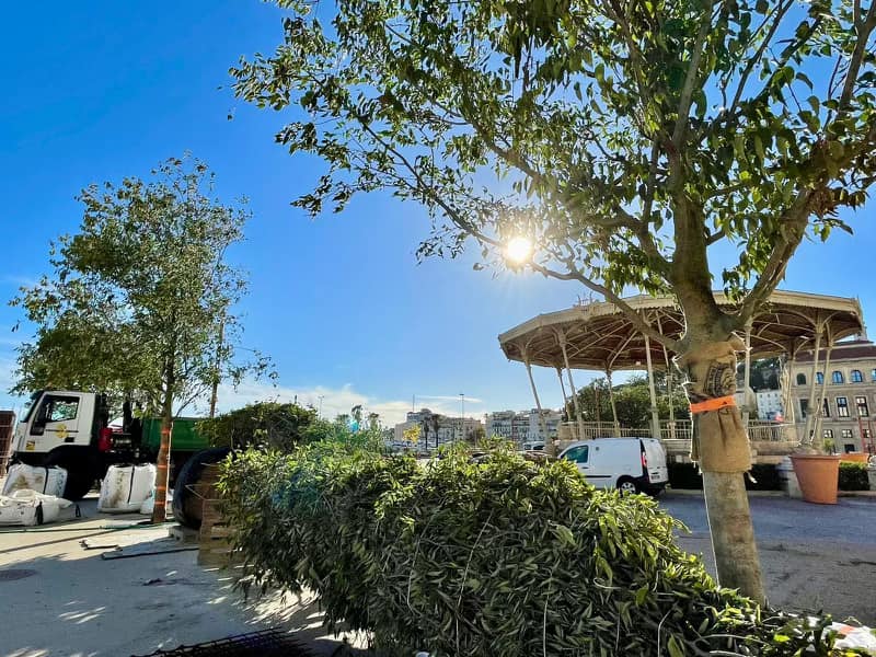 Micocouliers (5 à 6 mètres de hauteur) ont été plantés hier, jacarandas et platanes le seront jusqu’à la semaine prochaine, sur la portion comprenant le kiosque à musique, élément fort de notre patrimoine aujourd’hui valorisé en tant que monument, et qui n’a peut-être jamais été autant photographié au cours de son histoire que depuis la rénovation de la place. Puis viendra le tour du boulevard de la Pantiero, avec de beaux et grands platanes sains.