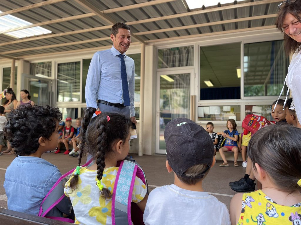 A l’école des Mûriers, à La Bocca, David Lisnard est venu saluer les écoliers, enseignants et personnels encadrants en ce jour de rentrée scolaire.