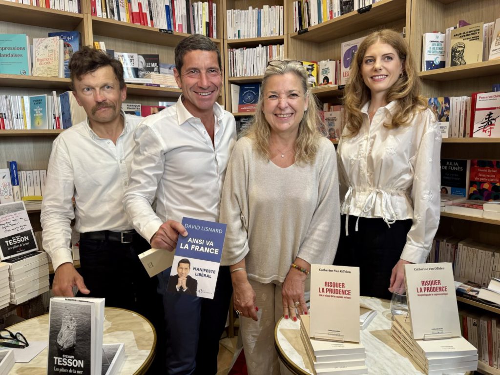 Entre deux rendez-vous, David Lisnard a tenu à saluer les deux auteurs qui étaient de passage à la librairie indépendante cannoise Autour d’un livre : « entouré de talent, d’audace et d’une certaine soif de liberté pour la séance de dédicaces de Sylvain Tesson et Catherine Van Offelen ».