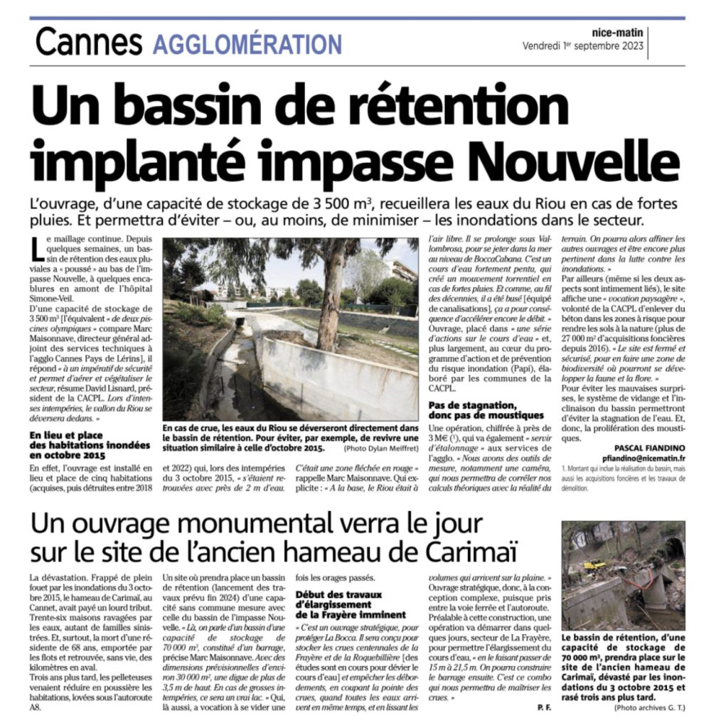 L'Agglo Cannes Lérins crée un bassin de rétention des eaux pour protéger les riverains des inondations