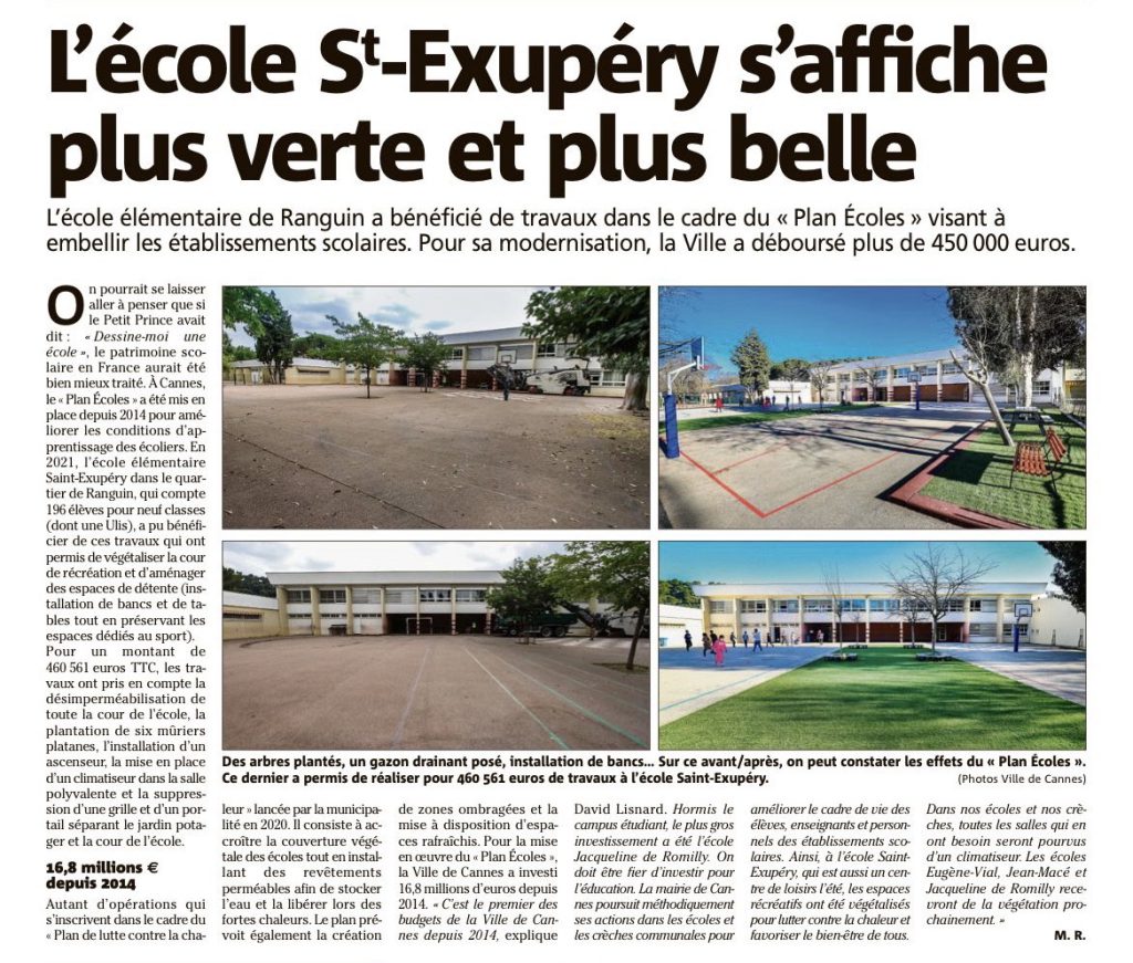 « On doit être fier d’investir pour l’éducation. La mairie de Cannes poursuit méthodiquement ses actions dans les écoles et crèches communales pour améliorer le cadre de vie des élèves, enseignants et personnels » David Lisnard.