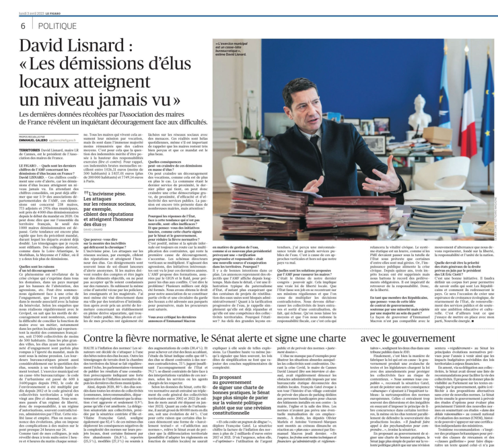 David Lisnard a accordé une interview au Figaro, dans laquelle il évoque la problématique des démissions d’élus locaux, et revient aussi sur l’avenir de la droite : « la façon de gouverner d’Emmanuel Macron n’est pas compatible avec le mouvement d’alternance que nous devons représenter, fondé sur la liberté, la responsabilité et l’unité de la nation ».